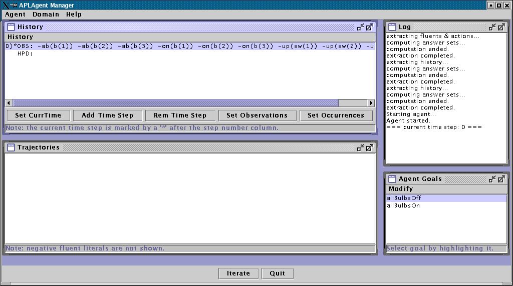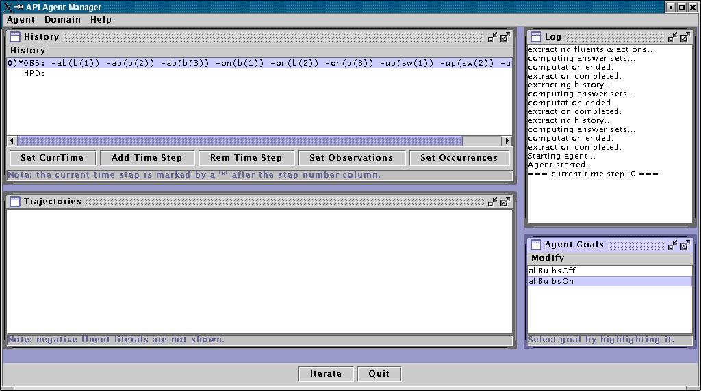 The currently selected goal is "allBulbsOff", which means that the agent