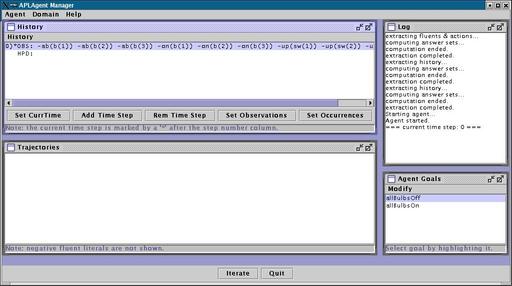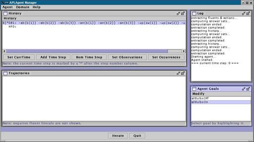 Dialog, and you will be able to enter new goals by adding A-Prolog code.