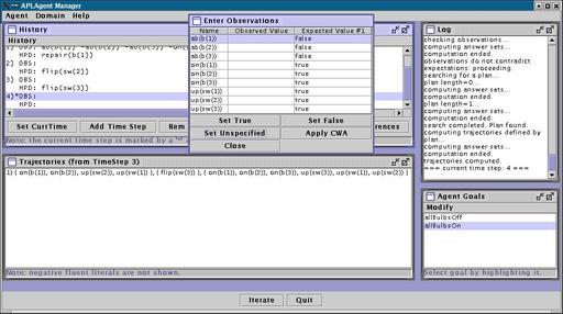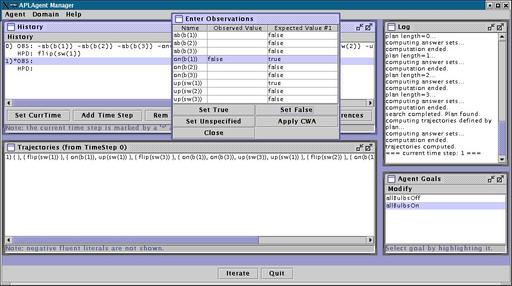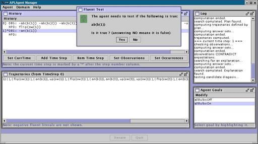 column shows the values that the agent expects the fluents to have. There