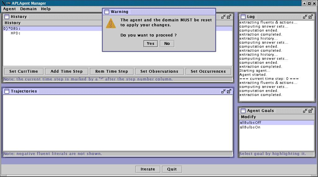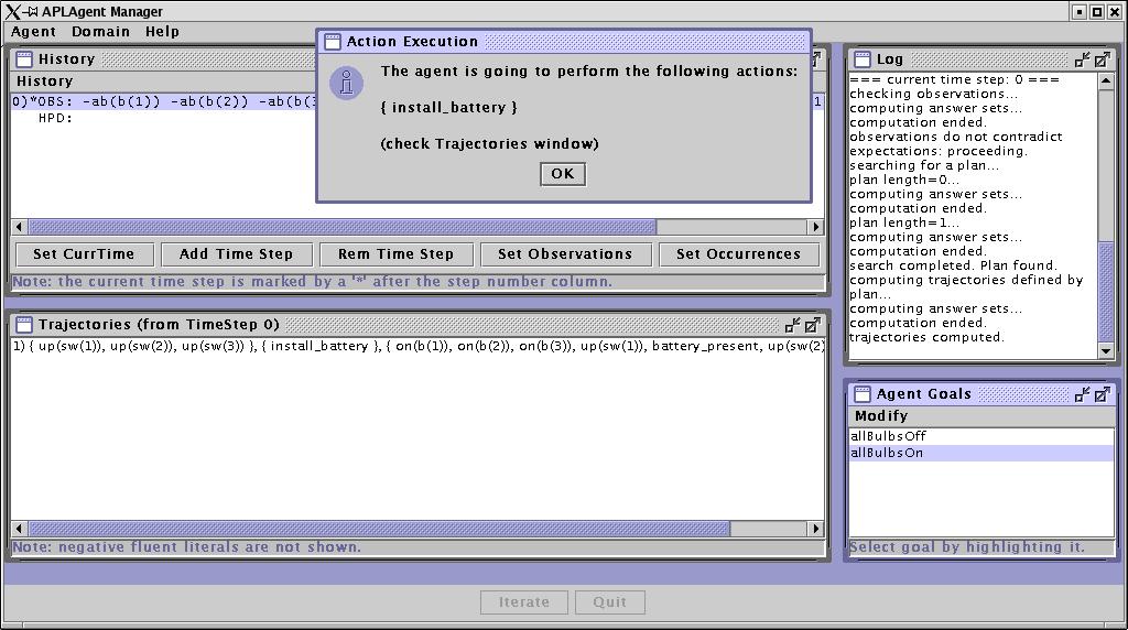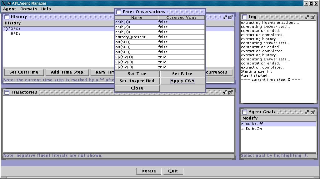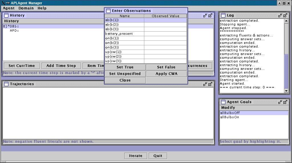 Now close the Enter Observations Dialog, select goal "allBulbsOn", and click